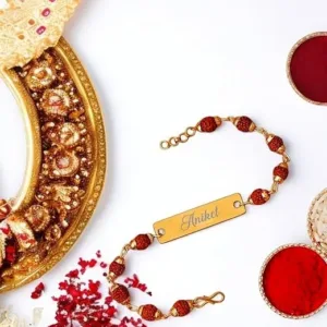 Metal Rudraksh Rakhi combines tradition and strength with real Rudraksh beads and a stylish metal design.